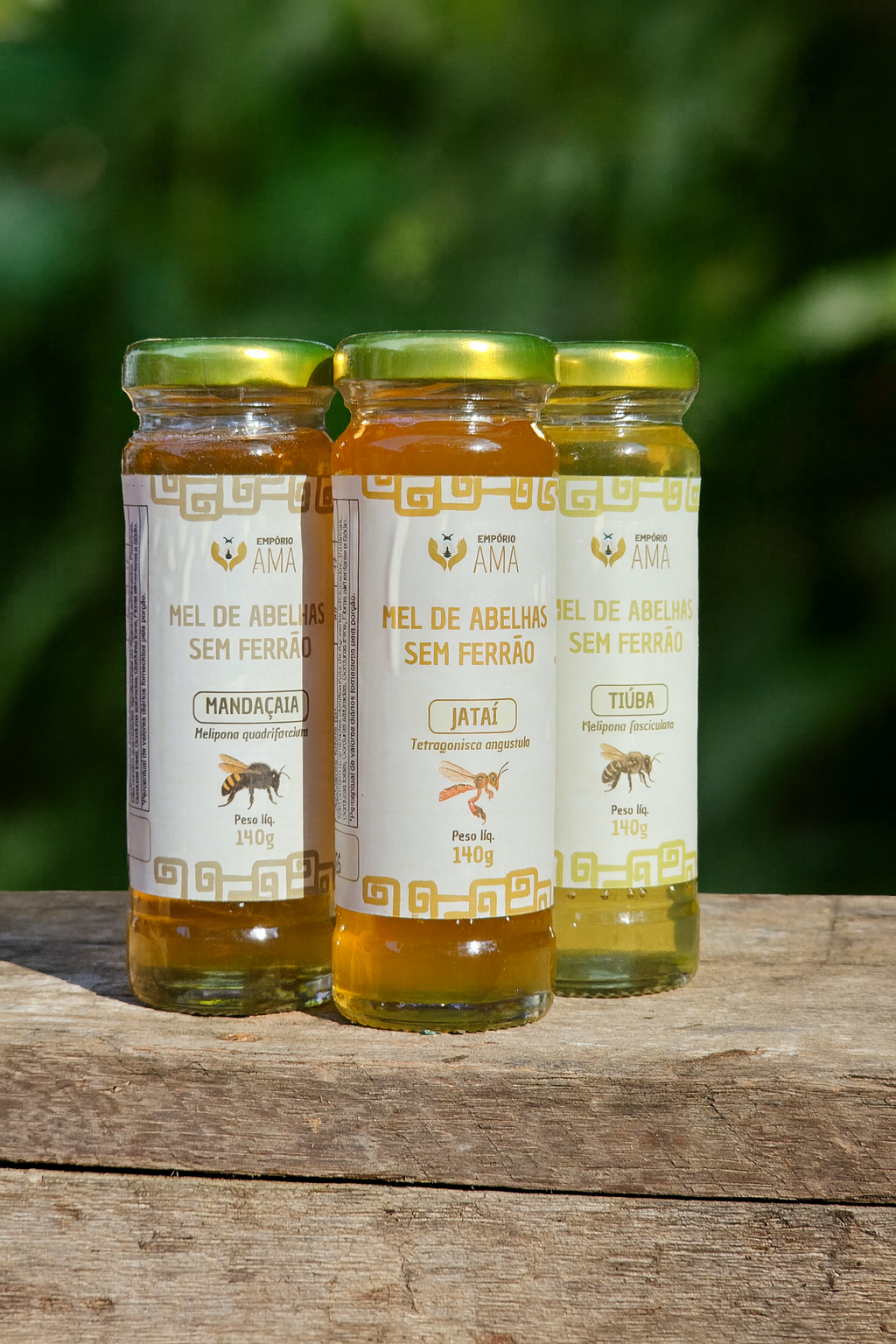 Um kit mais do que especial, que reúne 3 dentre os mais especiais méis de abelhas nativas brasileiras. 100% puros e coletados de forma consciente, conservando as abelhas nativas do Brasil, os nossos méis são referência em sabor único e extrema qualidade.